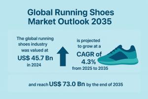 WILMINGTON, DE, UNITED STATES, October 10, 2025 /EINPresswire.com/ -- The global running shoes market was valued at US$ 45.7 Bn in 2024. It is projected to grow at a CAGR of 4.3% from 2025 to 2035, reaching an estimated US$ 73.0 Bn by the end of 2035. The market’s growth is attributed to the surging adoption of athleisure culture, rising fitness consciousness, and rapid technological innovations in footwear design. Increasing popularity of marathons, outdoor sports, and recreational running continues to expand the consumer base, while sustainable materials and smart footwear technologies are reshaping the industry’s future.— Transparency Market Research