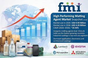 NEWARK, DE, UNITED STATES, April 3, 2026 /EINPresswire.com/ -- The global High Performing Matting Agent Market is valued at USD 0.93 billion in 2026 and is projected to reach USD 4.29 billion by 2036, expanding at a CAGR of 16.50% during the forecast period. Market growth is driven by increasing demand for low-gloss and matte surface finishes across industrial coatings, consumer electronics, packaging films, and building materials.